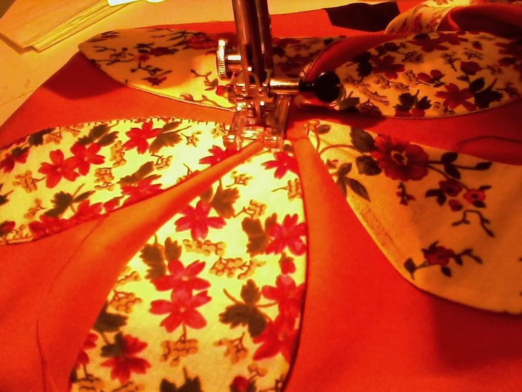 -Ha a mintán belül is van rögzíteni való rész (arcon a szemek, vagy virág közepe, esetleg egy méhecske a közepén, azt akár ragasztó stifttel is feltehetjük az alatta lévő rétegre,. majd belülről kifelé haladva tűzzük a ráncosodást elkerülendő)