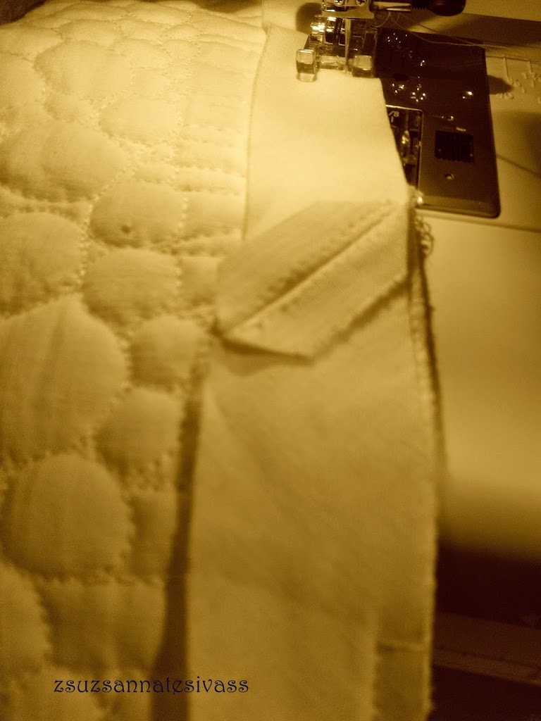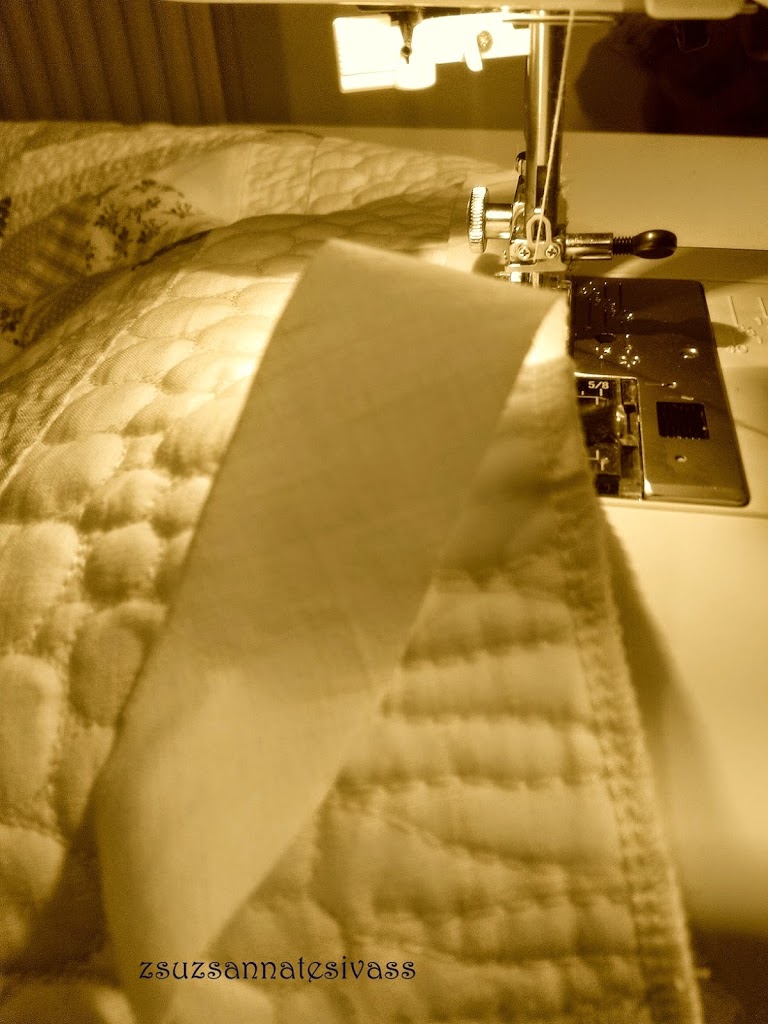 Sokak mumusként emlegetik a munkának ezt a részét és inkább el is hagyják, vagy más, kevésbé míves befejezést választanak. Pedig….egyszerű,csak egy kis időt kell szánni az elkészítésére. Én többnyire saját anyagból varrom a hozzávalót, lévén így jóval olcsóbb, nem kell a színben biztosan passzolót keresgetni, azonkívül a bolti változat mintha egyre vékonyabb anyagból készülne. Persze ez nem azt jelenti, hogy az nem is jó, egyet azért mindenképp meg kell nézni mielőtt vesztek, hogy ne ragasztott legyen, hanem varrott, mert a ragasztott változat nem bír túl sok mosást, így igencsak megrövidítheti az elkészített tárgy élettartamát.