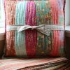 A képen, amit hoztam egy érdekes megoldást láthatunk, váltakozva jelennek meg a kettő vagy négy háromszögből varrott és a csíkos anyagból szabott, teljes négyzetek. Ettől a kis trükktől, a kész munka jóval aprólékosabb megmunkálást mutat a valódinál.