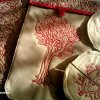 Eszembe jutottak a kis mini gobelin hímzései, amiket pár éve egy télen át varrogatott, aztán odaadta, hogy csináljak velük valamit… Telt múlt az idő, de nekem semmi használható ötlet nem jutott eszembe. A díszpárna is, a terítő is időnként igényli a mosást, az ezzel járó tortúrát, nehezen viselték volna ezek az aprókák…